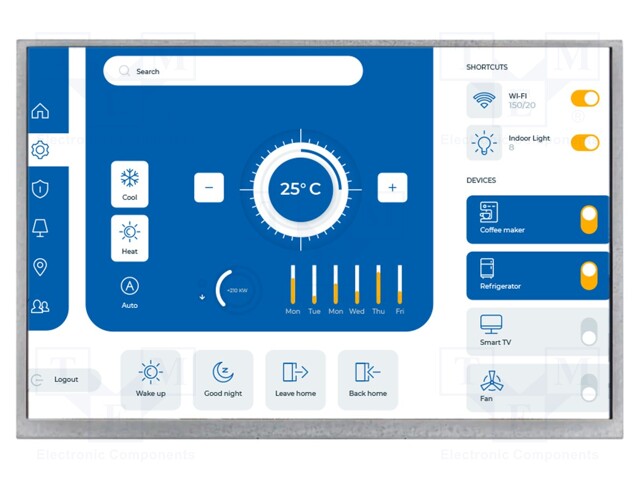 ОписаниеДисплей: TFT; 5"; 800x480; Подсвет: LED; Размер окна: 108x64,8мм
